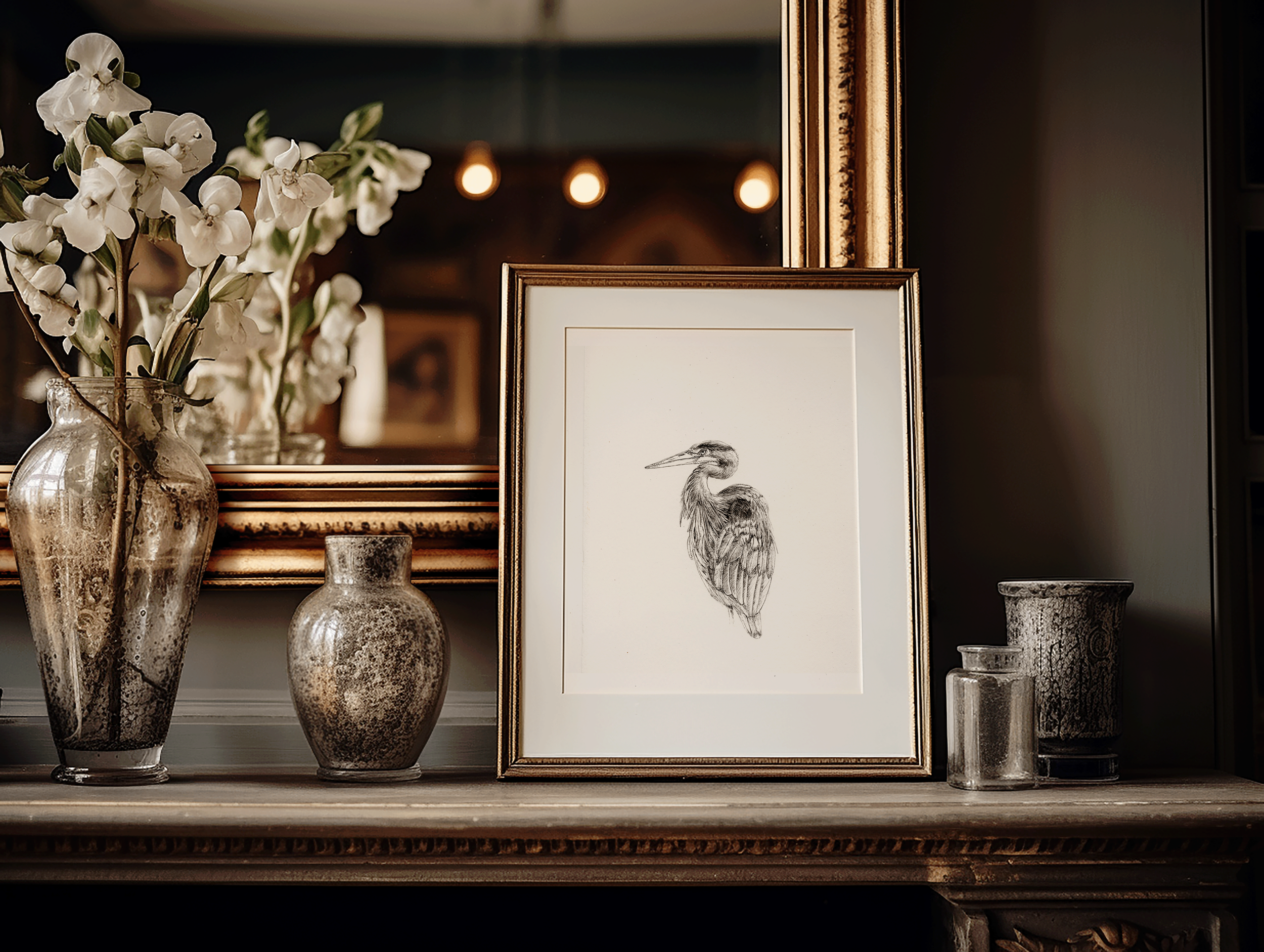 This fine art print of a great blue heron was originally hand-drawn using archival ink pens. Watching this heron during my morning walks to the beach, I’ve come to appreciate its stillness and quiet patience. Standing tall in the shallows, it seems to be a sentinel of the coastal landscape, embodying the peaceful rhythm of nature. It’s a reminder of the quiet neighbours we share our world with, often unnoticed, yet ever-present—patiently going about their day, just as we are.